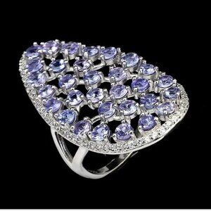 Unheated Round Blue Tanzanite 3mm & Cz 925 Sterling Silver Ring Size 6.75