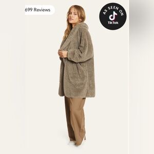 These robes are so soft and comfy. Great for a lazy day lounging around the house. They are nice enough to wear out on your morning coffee run as well. This version has the cuffed sleeves, side slant pockets and a hood.
