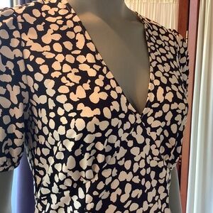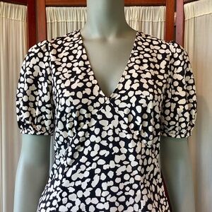 UniQlo Mini Dress Black & White Abstract V neck Short Sleeve Womens Small