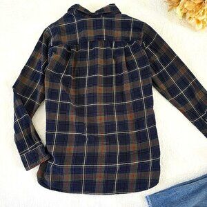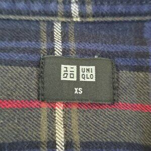 UniQlo Women's Button Down Flannel Shirt Size XS Green Blue Plaid Grunge Retro