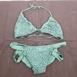Unico Swimwear Scrunch Butt Bikini Size X-Large. Bikini Top Tie around neck and back in Green With matching Bottoms.