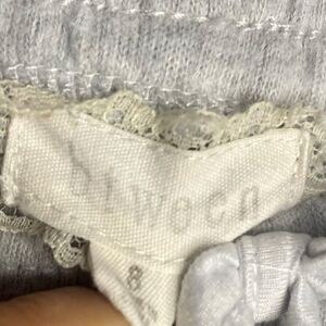 Girl's gray pull-on sweat shorts. These shorts have a unicorn on the left-hand side. Good overall condition. No rips or stains. Normal signs of wear from being washed and worn. The wear is peeling/fuzziness in the fabric.