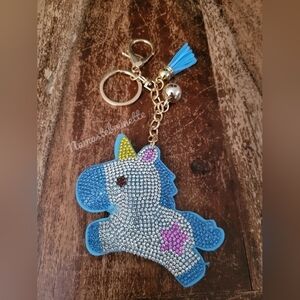 Unicorn Crystal Rhinestone Keychain Bag Charm With Blue Tassel