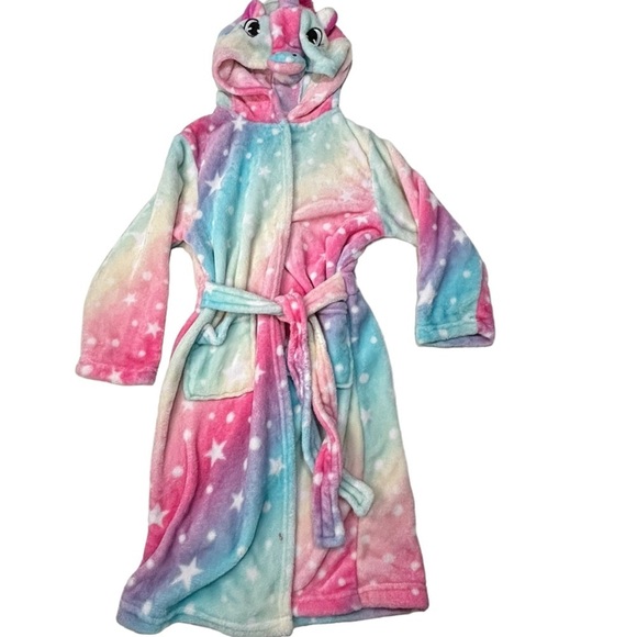Step into the magical world of dreams with our Unicorn Robe Hooded Starry Sky Print. Crafted from soft, plush fabric, this robe envelops you in comfort and warmth, perfect for cozy evenings at home or lounging after a long day. Its whimsical starry sky print and adorable unicorn design add a touch of enchantment to your relaxation routine. The hood provides extra coziness, while the tie belt ensures a secure fit. Whether you're snuggled up with a book or enjoying a movie marathon, this robe is sure to make you feel like the star of your own fairy tale.
