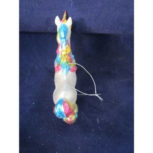 Unicorn Horse Rainbow Tail Mane Glitter Mercury Style Blown Glass Ornament New
