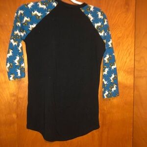 Unicorn Lularoe Women's Randy 3/4 T Shirt Black Blue Baseball Tee Soft Stretch size xxs. Preowned. smoke free home