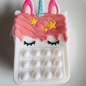 Adorable unicorn-themed kids bag with a pop it design. Features a playful white and pink color scheme, perfect for little ones.