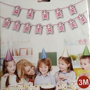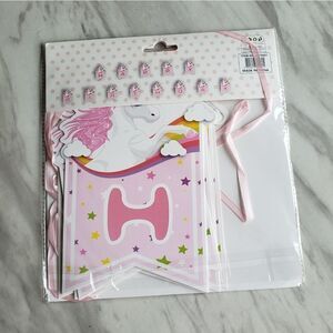 Unicorn Rainbow Pink Girl Happy Birthday Ribbon Banner NWT
