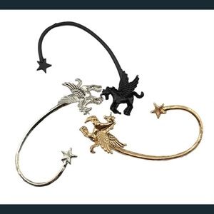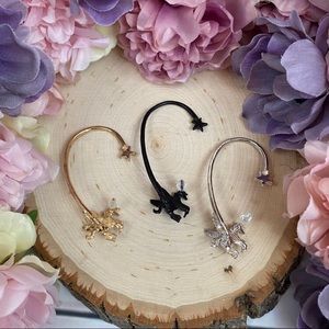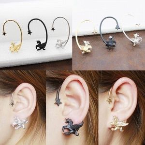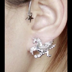 Make a wish 2 in 1, single left pierced earring unicorn with shooting star ear cuff. Shooting star bends up and around upper ear.