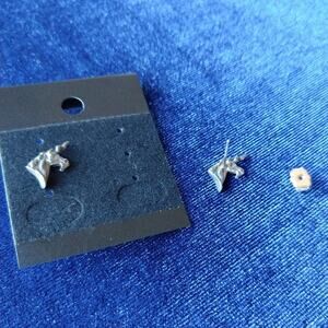 Unicorn Stud Earrings magical mythical beasts 0.5" silver metal pewter NOS