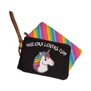 Unicorn Lovers Club Canvas Makeup Travel Poches, Zip Closure, Leather Wristlet