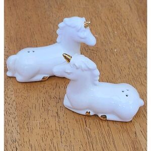 NEW without tags | Set of (2) Unicorns White & Gold Salt and Pepper Shakers | By Target | 3" x 4" | Excellent Used Condition | No chips or cracks | Mystical | Magic | Fantasy | Collectible | Kitchen Décor | Weight before packaging 6oz.