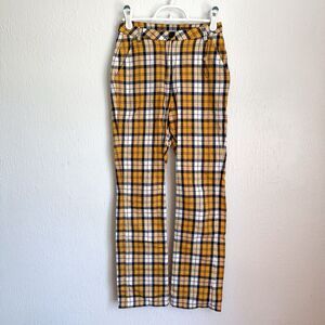 Unif Dawson Yellow Plaid Pants Women’s 24 High Waisted Cropped Straight Cotton