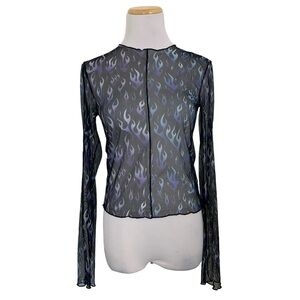 Unif Desire Flame Mesh Semi Sheer Long Sleeve Top Size medium