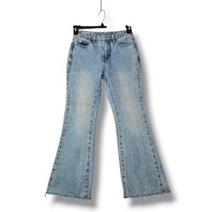 Unif Flare Jean Womens sz 26 Mid-rise Light Wash Raw Hem Steve Style 100% Cotton