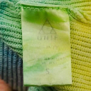 Unif Size Small S Stevie Multicolor Pastel Tie Dye Scoop Neck 3/4 Sleeve Waffle Thermal Knit Fringe Asymmetrical Hem Knit Mini Dress