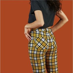Unif Yellow & White Plaid High Waisted Straight Leg 100% Cotton Dawson Pants