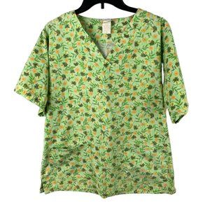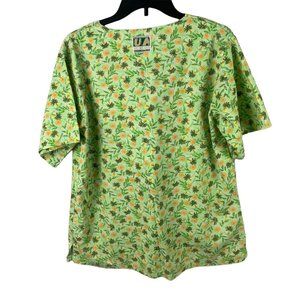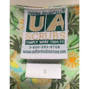 Uniform Advantage UA Scrubs Womens Small Green Floral Palm Trees Scrub Top
