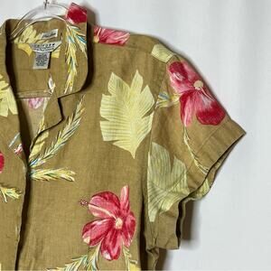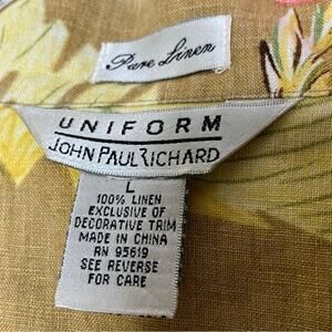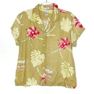 Uniform John Paul Richard 100% Linen Tan Tropical Short Sleeve Button Shirt L