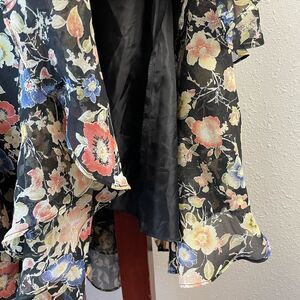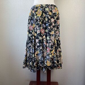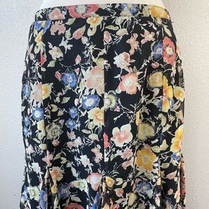 Beautiful floral skirt in excellent preowned condition. It measures 16 inches at the waist and 26 inches in length.