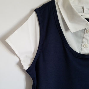 Girls Uniform Ponte Knit 2 In 1 Dress 2XL or 16 in girls. Like new. White collar shirt connected to Navy dress
