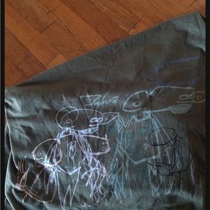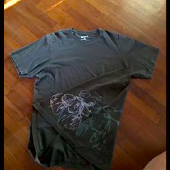 Ex-large Mens olive green tee shirt . Has a print on the bottom of shirt , Cotton , In very good condition . Hardy never used . Almost new ! Smoke free .