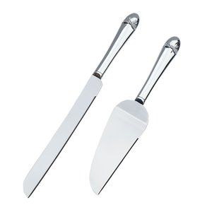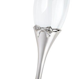 Toast with style and sophistication with our "Bow-tiful" Collection toasting flutes/champagne glasses. These silver-plated, classic silhouette flutes feature a rhinestone embellished bow, adding a touch of elegance to your special day. Perfect for weddings, anniversaries or any special event. Cut and serve your cake in style with our "Bow-tiful" Collection Cake Knife/Serving Set. The rhinestone embellished bows add a sweet, feminine touch any special event.