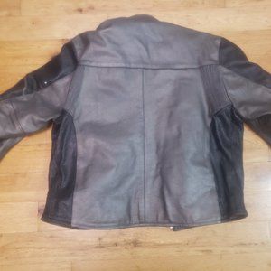 Silver/Grey & Black Leather with Mesh Interior under a Zipped-in removable quilted vest and Secret inside pocket