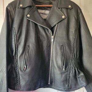 Unik Premium Women’s XXL Black Leather Braded Motorcycle Biker Jacket, Never Worn, NWOT