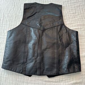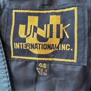 Unik Heavy Leather Vest Mens Size 44 Black Biker Motorcycle, 2 Inner Pockets
