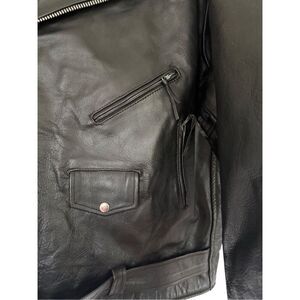 Unik Mens Black Leather Zip Front Belted Biker Motorcycle Jacket Size 56 3XL