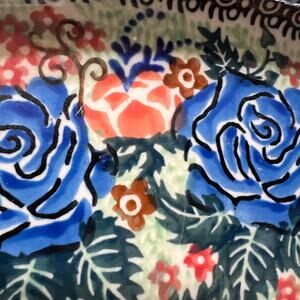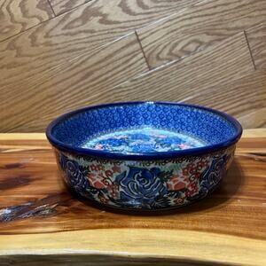 Unikat Ceremika Polish Pottery Casserole Dish Oval Blue Floral Bakeware 2007