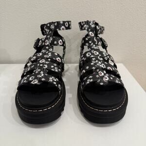 Union Bay Downtown Gladiator Blk/Wht Floral Strappy Chunky Sandals Womens Sz 10M