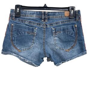 Union Bay Girls SZ 14 Jean Shorts Cuffed Stretch Whiskered Pockets Embroidered