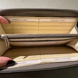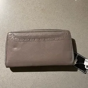 This gray wallet from Union Code has an outside pocket and stud detail. It’s perfect for everyday use!
