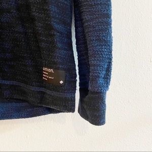 NEW Union Denim Baja textured knit hoodie pullover sweater featuring quarter button neckline. Colorblock design with marled spacedye look.