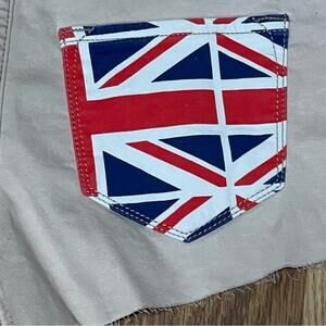 Tan Beige Cheeky Cutoff Shorts with Union Jack Pocket and inside waist size 28 waist
