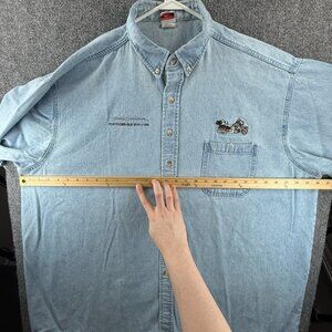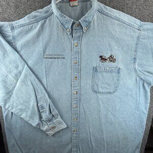 Union Line Harley Davidson Denim Shirt Men USA Made 2XLT Tall Graybear Pocket