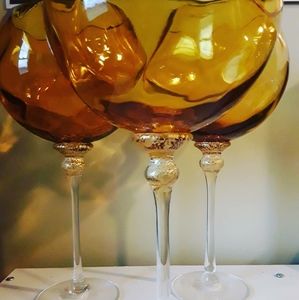 These stunning wine goblets were made in Richmond, CA by Union Street Glass. They feature a crystal ball top with a handblown stem that has gold leaf melted into the stem's ball. In phenomenal condition with no chips, nicks, scratches or cracks! The bottoms of the stem are signed by the artist. This glassware is HIGHLY sought after and EXPENSIVE! A single glass retails for $100+!