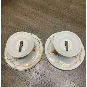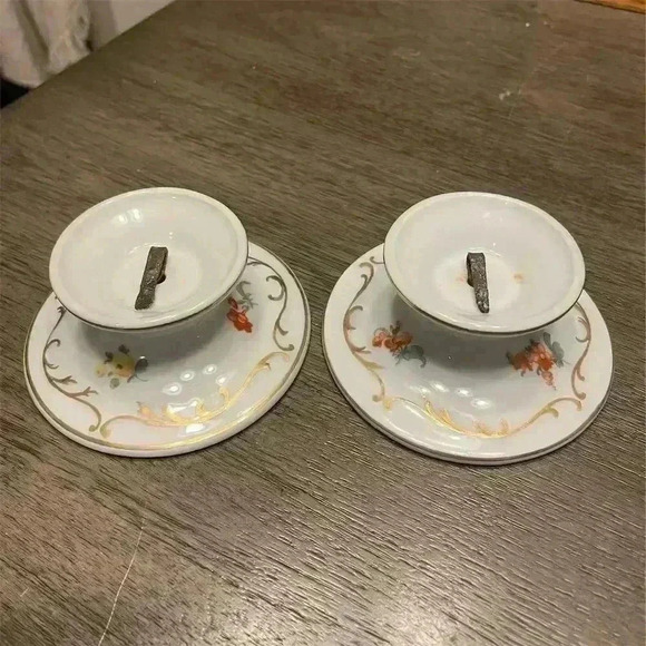 Union T Porcelain Candle Holders Floral Gold Detailing Pair Antique circa 1920