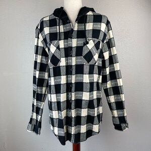 Union Bay Button Down Plaid Flannel Hoodie Size M EUC