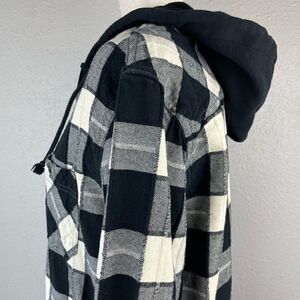 Great plaid flannel hoodie in like new preowned condition. It measures 22 inches across the chest laying flat and is 28 inches in length from the shoulder to the hem.