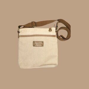 Lightweight and versatile crossbody by UnionBay in a neutral beige canvas with tan accents.