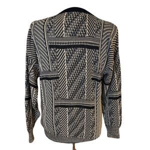 Vintage 90s Union Bay men’s black and white geometric pattern sweater. Pullover crewneck.