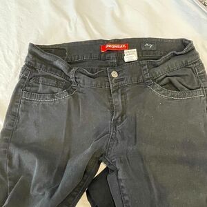 These vintage, hard to find jeans are in excellent condition. The pictures make the jeans appear that they are faded, but they are actually still very dark black and not faded at all. These will be a great addition to any wardrobe.