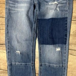 Unionbay Denim Jeans Distressed PatchWork Straight Mid Rise Ankle Pants Size 1