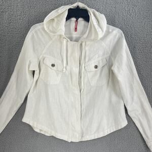 Unionbay Hooded Jacket Womens Medium cream Linen Blend Shacket Button Pockets