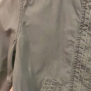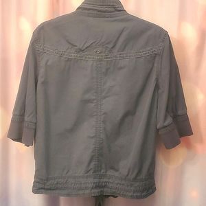 This cute distressed cropped jacket goes with jeans, shorts or even a mini skirt on the front left side I did a close up of the distressed marks really not noticeable though. GUC no stains or holes.
