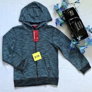 NWT. Full Zip Hoodie Cardigan for Boys Various Sizes. Knit construction, front pockets, zipper for closure, long sleeves, marled pattern, as per tag color is known as "Azure", great for layering. Pictures are part of description.