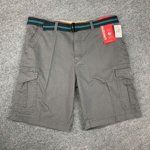 Unionbay Shorts Mens 38 Grey Cotton Cargo Pockets Classic Relaxed Fit Belted